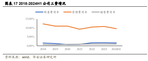 费用管控逐步优化。公司三费管理能力不断加强,管理费用率从2018年的12.28%下降至2024年上半年的9.60%,而销售费用率和财务费用率持续稳定在1%左右,管控能力优秀。未来随着降本增效措施的持续推进,公司费用率有望进一步下降。
