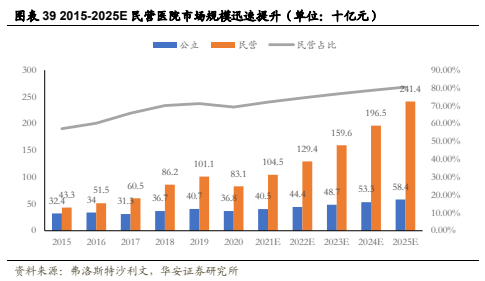 政策驱动下,民营医院占比迅速提高。自2009年开始,国家逐步出台相关政策支持社会资本进入医疗行业,民营医院投资的赛道持续火热。2021年《中华人民共和国国民经济和社会发展第十四个五年规划和2035年远景目标纲要》中提出,要积极支持社会办医发展,社会办医疗机构可以牵头组建或参加县域医共体和城市医疗集团。在政策的春风下,民营医院数量快速增长,2020年我国民营口腔医疗行业市场规模为831亿元,预计2025年民营医院占比将进一步提高至80.52%。