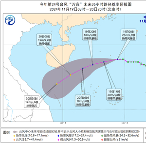“万宜”向西南方向移动并逐渐减弱华南及南海有风雨天气