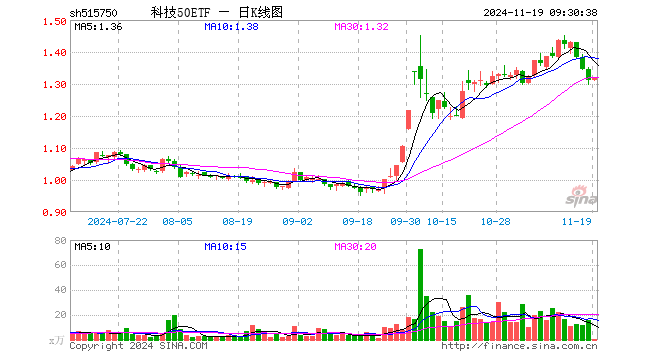 科技50ETF(515750)业绩比较基准为中证科技50策略指数收益率,管理人为富国基金管理有限公司,基金经理为王乐乐,成立(2019-11-15)以来回报为31.11%,近一个月回报为2.87%。