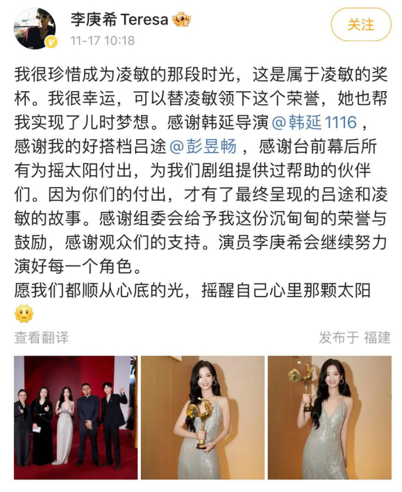 首位00后金鸡奖最佳女主角,李庚希在小花竞逐中领先了一个身位
