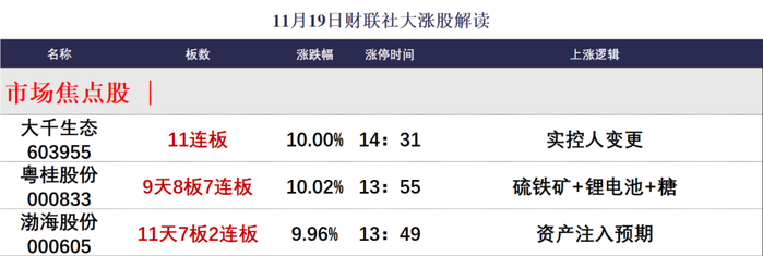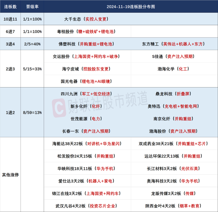 三大指数午后暴力拉升集体收涨,截至收盘,沪指涨0.67%,深证成指涨1.90%,创业板指涨3.00%。两市个股普涨,上涨个股超4500只;两市全天成交1.55万亿元,较上一日缩量成交2115亿元,内资主力资金净卖出276.1亿元;两市涨跌中位数为2.28%。盘面上,市场低迷之际,“神秘资金”出手爆拉重新激活市场做多意愿,市场再现“牛市氛围”,打出了明显的赚钱效应。锂矿为代表的新能源方向集体走强,天齐锂业、赣锋锂业、融捷股份等多股涨停,天宏锂电30CM涨停;BC电池、光伏设备等光伏产业链走强,广信材料20CM涨停,苏州固锝、欧晶科技涨停;半导体、光刻胶、国家大基金持股等大科技方向集体拉升,国芯科技、慧智微20CM涨停,康强电子、江化微等多股涨停;机器人产业链全天强势,科大智能、佳创视讯、拓斯达20CM涨停,东方精工、爱仕达等多股涨停;互联网金融概念强势护盘,汇金科技20CM涨停,赢时胜涨超10%;AI手机、华为产业链、消费电子等集体强势。跌幅方面,破净相关概念表现弱势,ST板块跌幅居前。消息面上,1、证监会主席吴清今日在参加国际金融领袖投资峰会时表示,随着资本市场全面深化改革扎实推进,资本市场长期向好的底层逻辑将会更加稳固;2、证监会主席吴清11月19日表示,对股份减持、量化交易、融券等及时完善相关制度规则和相关监管措施;3、近日工信部部长金壮龙在求是网发文指出,坚持“一链一策”,抓紧打造自主可控的产业链供应链;4、华为(深圳)全球具身智能产业创新中心正式运营。
