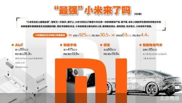11月19日,小米2024年三季度财报发布,小米CEO雷军再次表示“小米交出史上最强业绩”。在营收增长的背后,不同板块的表现有所分化,压力、挑战与机遇并存。手机方面,小米需要考虑将高端化之路走得更远;家电方面,公司则需要攻坚技术,向着业内龙头奋起直追;汽车销量屡屡攀升的同时,何时达到盈亏平衡,也是小米必须答复的问题。