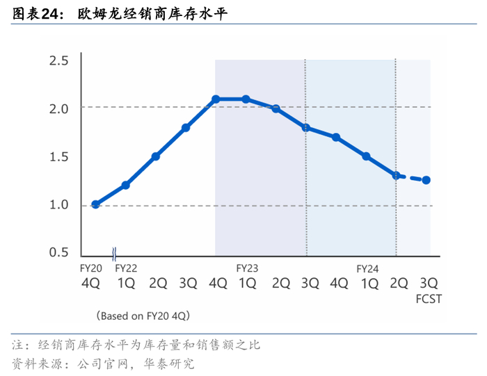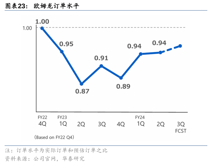 日系企业承压程度低于欧美系企业。根据安川电机10月4日发布的FY24 H1数据,其运动控制、机器人、系统工程业务收入分别为1194亿日元/1121亿日元/186亿日元,同比-15.1%/-0.2%/-19.3%,营业利润同比-45.5%/-18.5%/+34.4%。其中,中国市场的收入同比-17.8%。根据欧姆龙11月6日发布的FY24 H1数据,其工业自动化业务销售收入1745亿日元,同比-17.1%,而目前订单正在修复,经销商库存总体恢复到正常水平;毛利率所有改善。