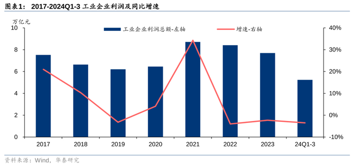 24Q1-3工业企业利润同比下滑。工业企业利润增长放缓会直接影响企业的现金流状况,进而影响其资本开支意愿,从而导致自动化升级的需求和释放节奏放缓。2023年,受宏观经济影响,工业企业利润总额 7.69万亿元,同比下降2.3%;24年1-9月为 5.23万亿元,同比下滑3.5%。从24年第三季度的月度数据来看,7/8/9月的利润总额分别同比+4.1/-17.8%/-27.1%,9月同比下滑幅度扩大,主要系去年同期高基数、工业品出厂价格降幅扩大等因素的影响。