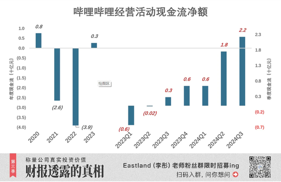 B站业绩的好转,早已在经营活动现金流净额中体现: