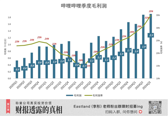 进入2024年,已有270万UP主获得收入,而B站毛利润一路提高到35%。