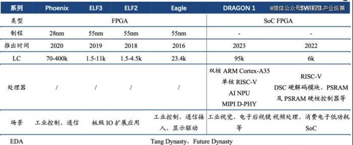 目前,主流的国内FPGA 厂商已从跟踪研仿国外 FPGA 芯片转变为构建自主定义、自主架构、自主软件的国产 FPGA 生态体系,且该体系已初见雏形。未来几年中国的FPGA企业预计会从目前的10家左右浓缩成3-4家,并且这几家的产品形态、技术路线都会有各自的特点,形成差异化竞争。当前主流的几家FPGA产品线都有些什么特色呢?