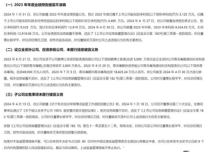 值得注意的是,这并非*ST鹏博首次遭遇监管层的关注。就在一个月前,公司刚刚收到了证监会的《行政处罚决定书》,原因是公司在2022年的年度报告中存在虚假记载,并因此被罚款1000万元,时任董事长等人也受到相应的处罚。