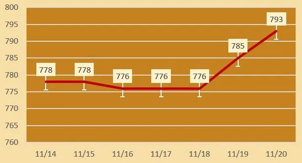 | 老凤祥 | 黄金价格 | 793元/克 | 涨8 |