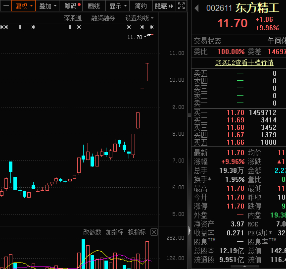 东方精工则是助攻,该股已连续5个涨停板,早盘更是直接“一字板”。值得注意是,东方精工被炒作期间,公司控股股东、实际控制人之一唐灼林于2024年11月19日通过集中竞价交易卖出公司股份681.32万股,根据东方精工最新股价,唐灼林此次卖出股份总价达7249万元。