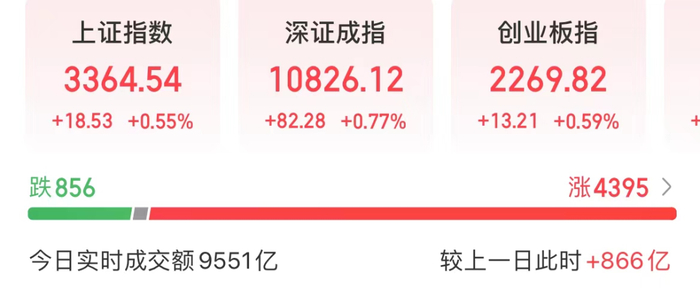 今天上午,化工、医药、AI应用端等板块走势较强,银行、保险等板块小幅调整。截至上午收盘,上证指数上涨0.55%,深证成指上涨0.77%,创业板指上涨0.59%。