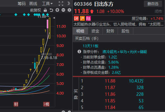 早盘,近期高位连板股日出东方走出“地天板”,激活市场热情,不仅光伏、储能乃至华为产业链等板块随之走强,连名字里带“东方”的个股也沾了光。