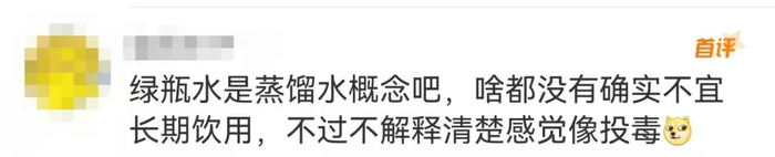 钟睒睒称,做绿瓶纯净水是为了名誉,让消费者自己选择。另据媒体报道,钟睒睒还表示,农夫山泉纯净水只做了一个规格,一个SKU,非常克制,口渴的时候可以临时买一瓶、两瓶没有问题,不要长期整个家庭从早上到晚上喝,长期喝一定是有问题的。