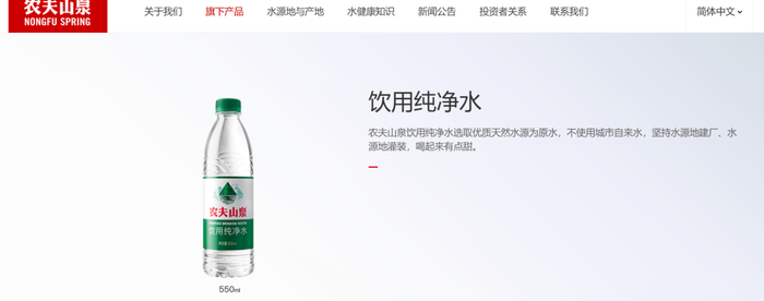 据报道,自2000年放弃纯净水业务后,二十多年来,农夫山泉包装水均来自天然水源,而同价格带的竞品以纯净水居多,形成差异化竞争。但在今年4月底,农夫山泉在时隔24年后重返纯净水赛道,直接杀入娃哈哈、怡宝等纯净水头部品牌的基本盘市场,并以低价策略在市场销售。在部分渠道,农夫山泉绿色包装的12瓶纯净水甚至只卖8.9元。