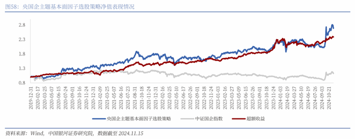 “央国企”的判断依据的是公司属性与公司实控人,中证国企指数(000955.CSI)的成分股涵盖了沪深两市所有国资控股的上市公司,并剔除了ST、ST*等股票,是一个非常便利的筛选国企股票的方法;同时,我们加入了上市满6个月且属性为国有企业的北交所股票、实控人为中科院等事业单位的股票,构成央国企主题选股的股票池。