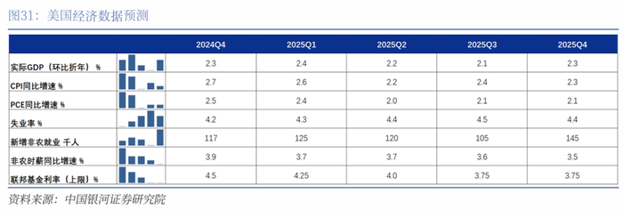 在外部具有较大不确定性的背景下,努力做好自身工作是更有效的应对方式,这将是2025年中国经济工作的主线,我们对于宏观政策的连贯性和一致性抱有信心。其一,十四五收官之年,我们认为5%左右的增长目标有望维持,逆周期政策更加给力,尤其重视内需提振,促进物价合理回升,财政更加“主动作为”,货币财政协同更加有效。其二,更大力度兜底对于社会预期和结构转型造成拖累的重大风险,让中国经济能够“轻装上阵”。目前大规模化债组合工具已经出台,2025年房地产增量政策的落实落地仍值得期待。其三,推动新质生产力加速形成,通过制度设计,让居民、企业、地方政府等更多主体参与分享“新经济”的红利,资本市场将是一个重要抓手,促进“科技-产业-资本”高水平循环。