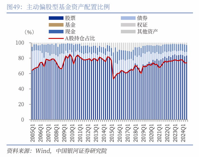 中长期资金方面,2024年以来,中长期资金积极入市,对A股形成有力支撑。9月26日,中央金融办、中国证监会联合印发《关于推动中长期资金入市的指导意见》,重点提出了建设培育鼓励长期投资的资本市场生态、大力发展权益类公募基金、着力完善各类中长期资金入市配套政策制度三方面举措。随着政策逐步落地,2025年,中长期资金有望加大入市力度,发挥好“耐心资本”的作用,提升资本市场内在稳定性。从保险资金来看,截至2024年二季度末,保险公司保险资金运用余额30.87万亿元,其中,财产险和人身险公司股票和证券投资基金占资金运用余额比例分别为15.32%和12.48%,远低于险资权益类资产投资比例上限。随着政策推动下长周期考核机制优化,险资入市空间有望进一步打开。