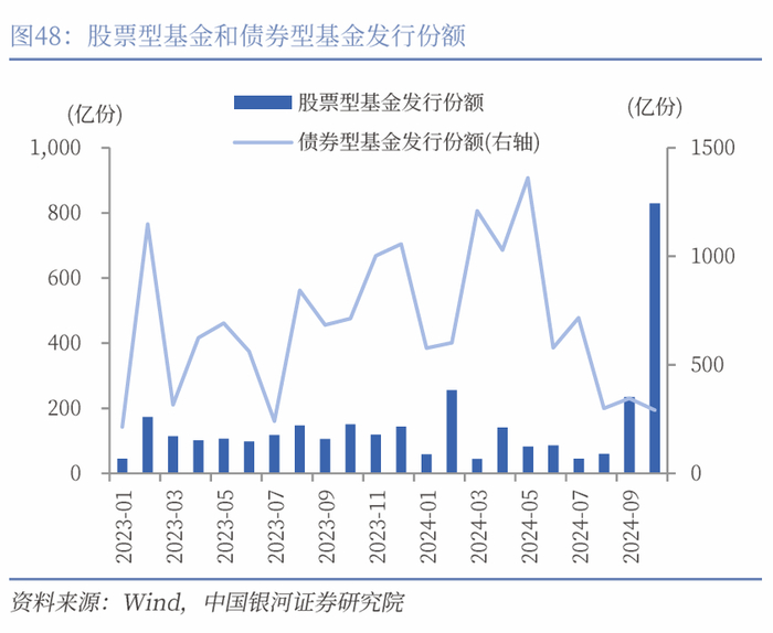 公募基金方面,从发行节奏来看,9月以来股票型基金发行明显提速,由8月的59.91亿份增长到9月的234.97亿份,10月达到800亿份以上,而债券型基金发行节奏整体放缓。资产配置上,第三季度,A股在主动偏股型基金资产配置中的占比逆转了前两个季度的下滑态势,由第二季度末的73.76%上升至73.94%,上升了0.19个百分点。可见,公募基金对于权益市场的偏好有所回升。后续随着基本面的积极信号更加明确,公募基金有望加速入场。