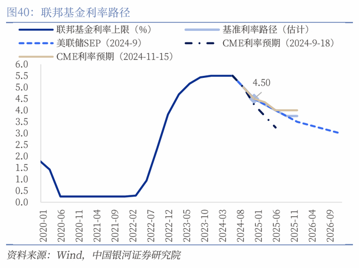 沿着2024年央行货币的改革与执行方向,预计明年货币政策仍将保持宽松基调,较大幅度的降准降息以及多种工具的灵活使用均可期待。最新央行三季度货币政策执行报告特别强调了对地产和物价的关注,意味着货币政策支持经济的必要性在上升,加强逆周期调节支持经济基本面将是2025年货币政策的重要关切。叠加考虑到明年外部环境更为复杂,汇率承压或对货币政策形成一定掣肘,同时财政积极发力下,货币的协同加强也会对货币政策的节奏形成影响,因此货币政策的落地在明年主要是相机抉择、灵活使用。