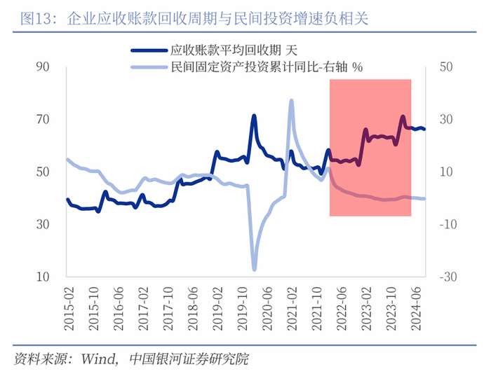 2024年基建投资增速自年初以来逐步走弱,我们认为基建增速略低于预期主要有以下因素:一是地方政府财力偏弱对实物工作量形成产生一定拖累,我们观测到自2023年开始地方政府土地收入开始难以覆盖到期债务偿还规模,这一现象伴随土地收入的降低在2024年进一步加剧,这也使得地方项目建设资金支出进度较慢,到9月底仍有2.3万亿专项债资金尚未投入使用(2018年固定资产投资使用财务支出法后,根据实际支付款项统计项目完成额,资金到位情况将影响基建投资增速);二是受广义财政拖累,政府投资的资金撬动作用有所降低,我们测算今年广义赤字率较去年大幅降低至6%左右水平,其中PSL、城投债、政策性金融资净融资规模均大幅降低,作为项目建设重要配套资金的广义财政工具缺位也使得今年基建增速有所降低;三是“多角债”务问题使得民间投资增速降低,企业应收账款的平均周期由2018年的47.4天大幅提升至2024年9月份的66.3天,与此同时民间固定资产完成额的累计增速由8.73%持续降至-0.2%。