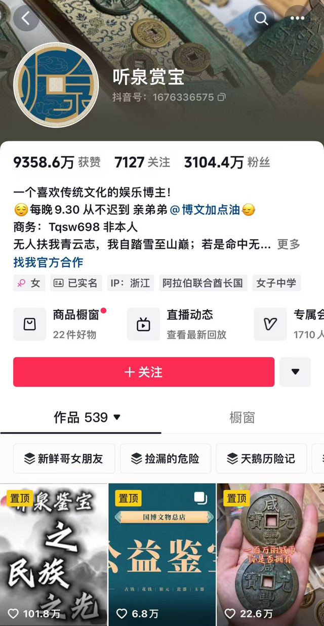 “听泉鉴宝”的人气有目共睹,近来在抖音平台蹿红,成为坐拥3000多万粉丝的新晋“顶流”。