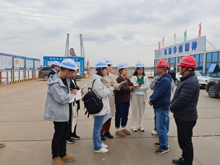 11月19日,“沿着长江看航运”媒体采访团下游行程的第一站来到江苏,中央广播电视总台、人民网、新华日报、江苏卫视、扬子晚报、现代快报、江苏法治报、中国交通报、中国水运报等媒体记者走进泰州靖江“船都”、张家港港、张靖皋长江大桥施工现场、张家港海事局水上交通管理中心、长江引航中心靖江引航站等,看以大船大港大通道为代表的高质量发展图景,感受壮阔长江动能澎湃。