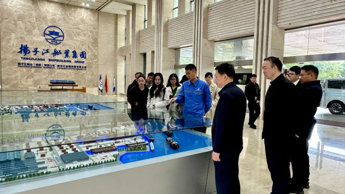 “全国造船看江苏,江苏造船看泰州。”走进扬子江船业,两座船坞和两个船台均在紧张忙碌,焊接的火花与机械的轰鸣交织,让记者们直观感受到这句话的含金量。