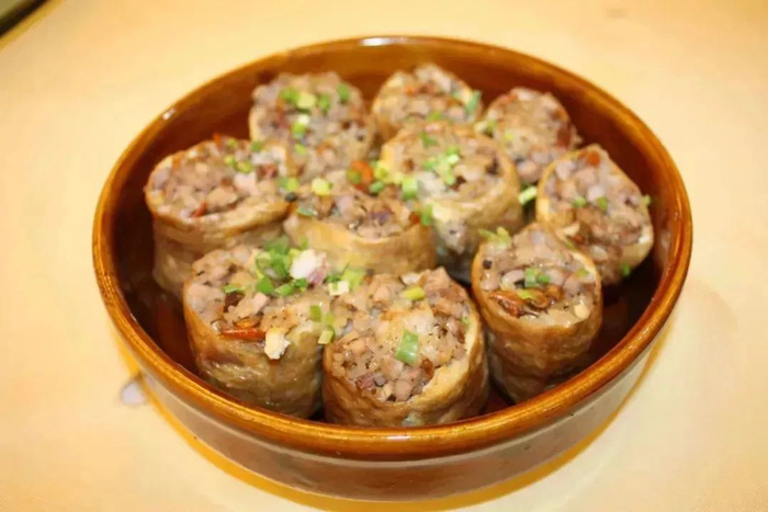 满满的一颗豆腐包,香甜的糯米、鲜香的虾仁、松软的芋头,夹入口中细嚼慢咽,给你美味的享受。