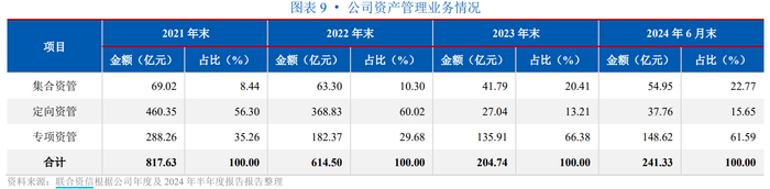 据联合资信评估股份有限公司今年10月对长城证券的信用评级报告,2021~2023 年末,长城证券资产管理业务规模呈逐年下降趋势,主要系受资管新规影响公司主动压缩定向资管计划所致。