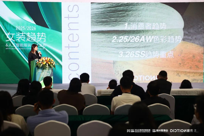 蝶讯趋势研究院高级研究员、蝶讯女装趋势中心总监罗子东女士带来《29y+,DICTION年度趋势发布》的主题分享,她重点解读了消费者趋势走向,深入解析2025-2026 秋冬女装流行色彩、预测2026春夏流行趋势,为服装设计师带来时尚趋势引领。