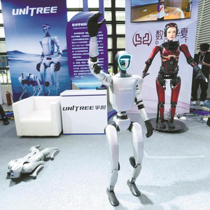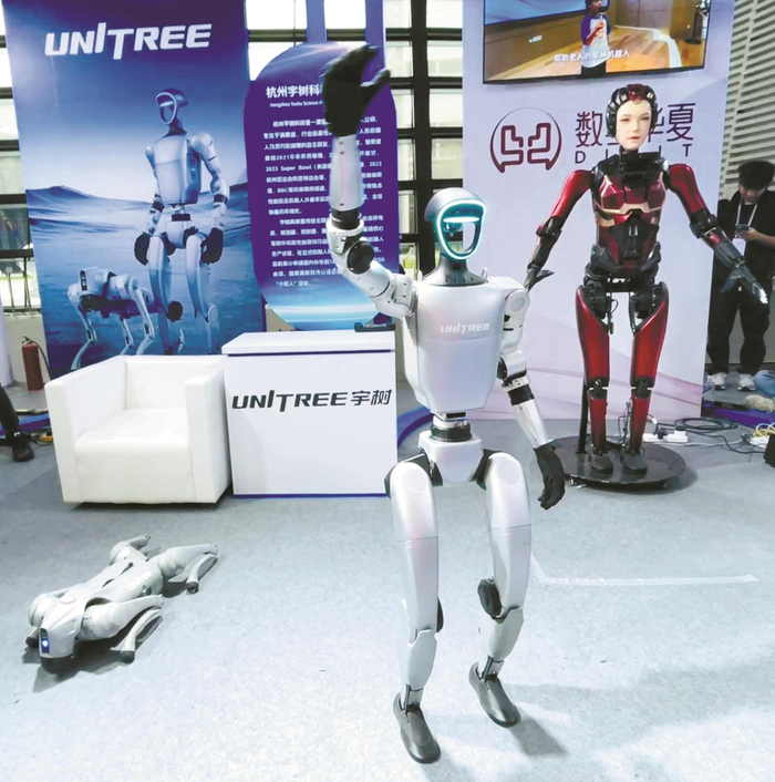 宇树科技推出的“宇树Unitree G1”人形机器人和机器狗。
