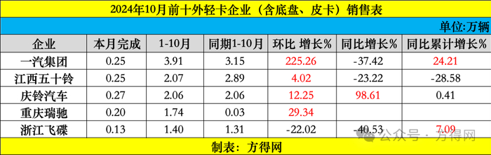 与同期相比,有4家企业单月销量实现了超越行业的增幅,其中有一家企业实现469%的同比增幅,这家企业就是远程轻型商用车。10月,跑赢大盘企业还有福田、长安、江铃。
