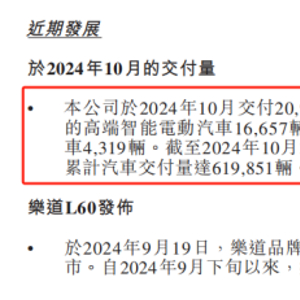 2024年第三季度,蔚来汽车交付量,于2024年10月交付20976辆汽车。其中,高端智能电动汽车16657辆,9月新上市的乐道4319辆。截至2024年10月31日,前10个月,蔚来汽车交付量创历史新高,今年以来累计交付付170257辆汽车。