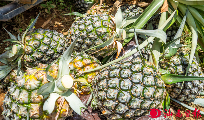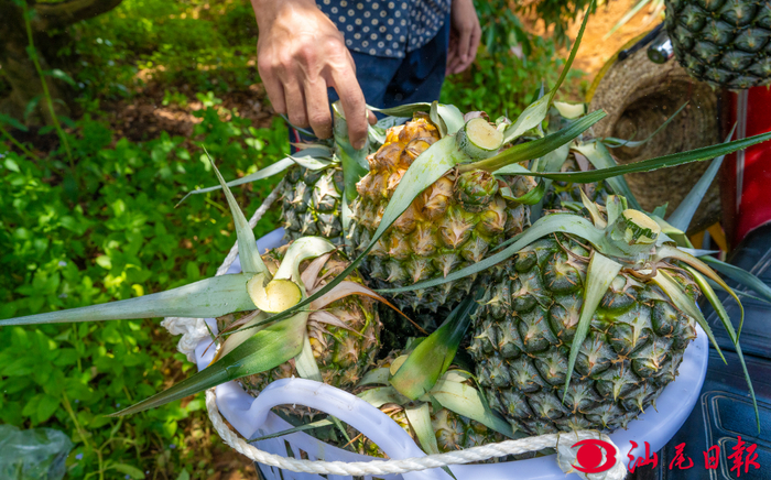 陂洋菠萝呈圆柱状,果顶端有花冠,株型开张,单果重0.7-1.3kg,叶缘锐齿,叶面主要以绿色为主,表面略显褐红色,表皮果眼锥状突起。菠萝的生长对土壤、光照和地形有严格要求,适宜种植在阳光充足的山坡地。陂洋菠萝果肉金黄、香甜多汁、好吃不麻嘴,在市场上很受欢迎。
