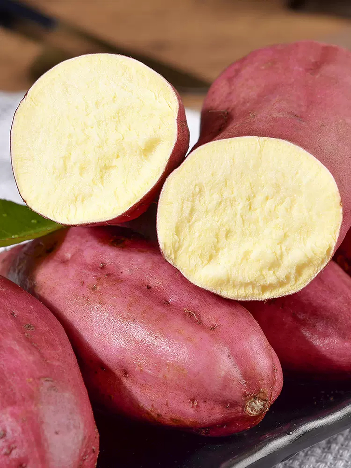 龙龙金甘薯个体大小均匀,该产品呈长椭圆形或纺锤形,薯长12至22厘米,平均单根重约155克,多数呈椭圆型,薯皮为玫红色,外表皮光滑有亮光,皮薄且相对平整。该板栗薯鲜食质脆味甜;熟食薯肉橙黄,口感细腻,甘甜绵软,具有板栗香味。