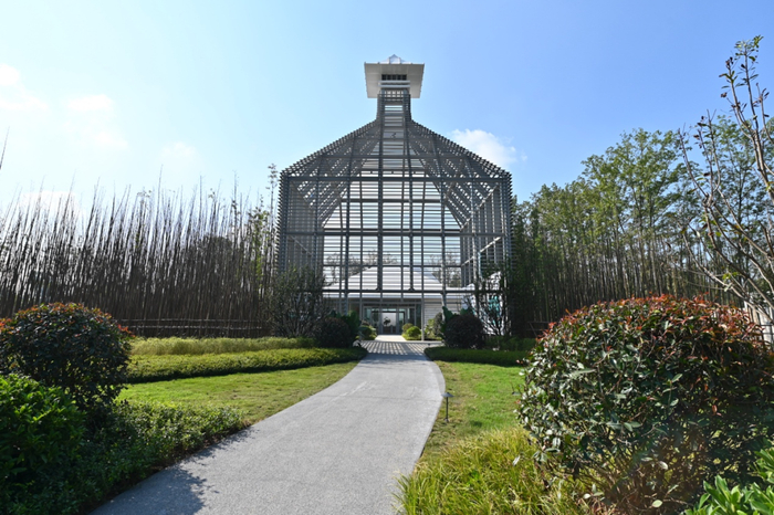 走进体验中心,顺着小径向右前行,是一座金属百叶建筑物。这就是以经典威士忌烘麦塔为原型、融合现代设计元素的烘麦塔。