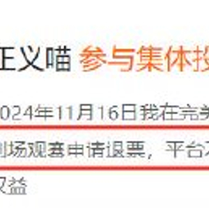 而完美世界平台公告显示,11月4日至11月10日期间,用户可在购票平台无条件提交退票申请,票款将在扣除票面价格的3%的退票手续费后退回至原付款账户。11月10日后,停止接受退票申请。如观众因法律规定的“不可抗力因素”需要退票的,在出示相应凭证后不受上述限制。