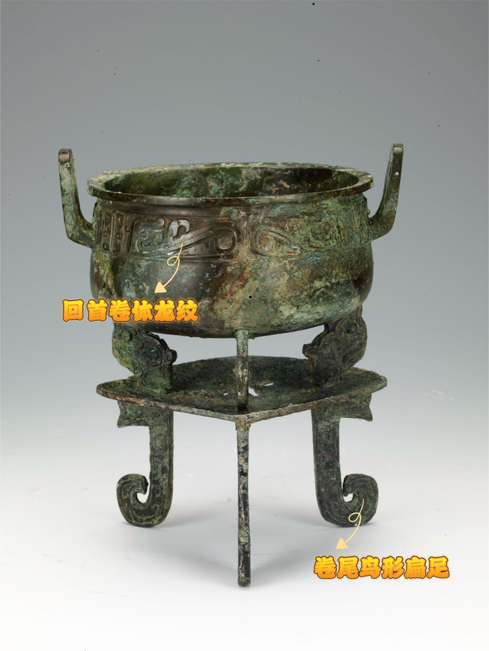 温鼎颈部装饰有精致的回首卷体龙纹