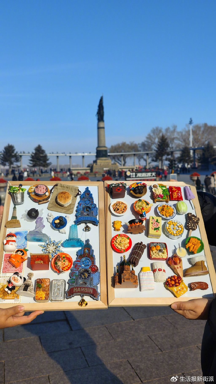 日前,随着哈尔滨气温日渐降低,冰城的旅游旺季也随之到来,越来越多的外地游客陆续来到美丽的哈尔滨。来一座城市旅游,买当地的文创产品,比如冰箱贴,就像是把这座城市的灵魂碎片小心翼翼地拾起,珍藏进生活的点滴角落。每一枚冰箱贴都是一个独特的文化符号,承载着这座城市的历史底蕴、风土人情与艺术魅力。近日,在冰城的文创店内上架了一系列东北特色美食冰箱贴,东北大酱、蘸酱菜、铁锅炖、粘豆包、铁盒饭等生动逼真,将东北特色美食的特点一一展现出来。这些冰箱贴不仅被哈尔滨本地市民喜欢,也广受外地游客青睐。