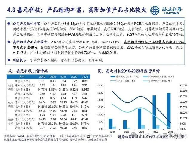 嘉元科技:产品结构丰富,高附加值产品占比较大