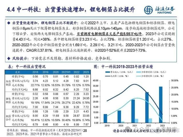 中一科技:出货量快速增加,锂电铜箔占比提升