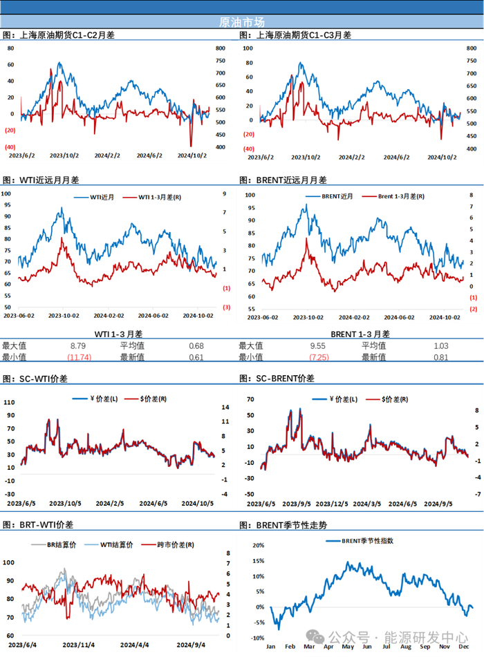 另外市场也开始关注欧佩克+是否会在12月会议上做出再次延长减产时间的决定,在低于预期的需求面前,做出继续延长减产时间对欧佩克+来说是更加合理的决定,但2025年欧佩克+内部面临合作的挑战,阿联酋提升产量基准后2025年有增产空间,沙特如何协调成员国的利益将是面临的一大挑战。高频指标方面随着地缘风险升温推动油价反弹,月差结构在近期跟随走强,成品油方面周四美国汽油裂解差回落明显,但在过去一段时间欧美成品油裂解差也有回暖动作,整体对油价回稳有支撑。连续反弹之后油价已经完全收复上周失地,区间震荡的局面进一步得到强化。注意节奏把握,谨慎参与。