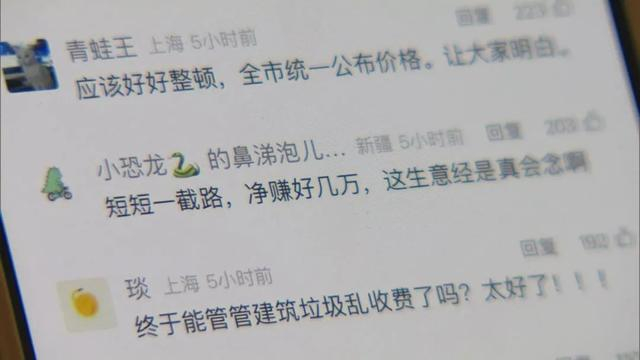 对此,浦东玖海云天小区清运“中间人”声称:“不是我们贵,我们还要出人工、要搬、要运,跟物业签了合同,够一车了就给正规公司打电话,让正规公司来拉。”