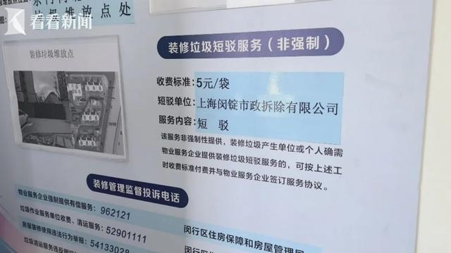 记者将情况反映给了属地闵行区华漕镇,负责人表示,该小区此前就有对“建筑垃圾清运费”的投诉,现在将外运、短驳分段计价公示已经是前期整改的结果。小区里的所谓“短驳”服务企业,就是由物业自行选择的。