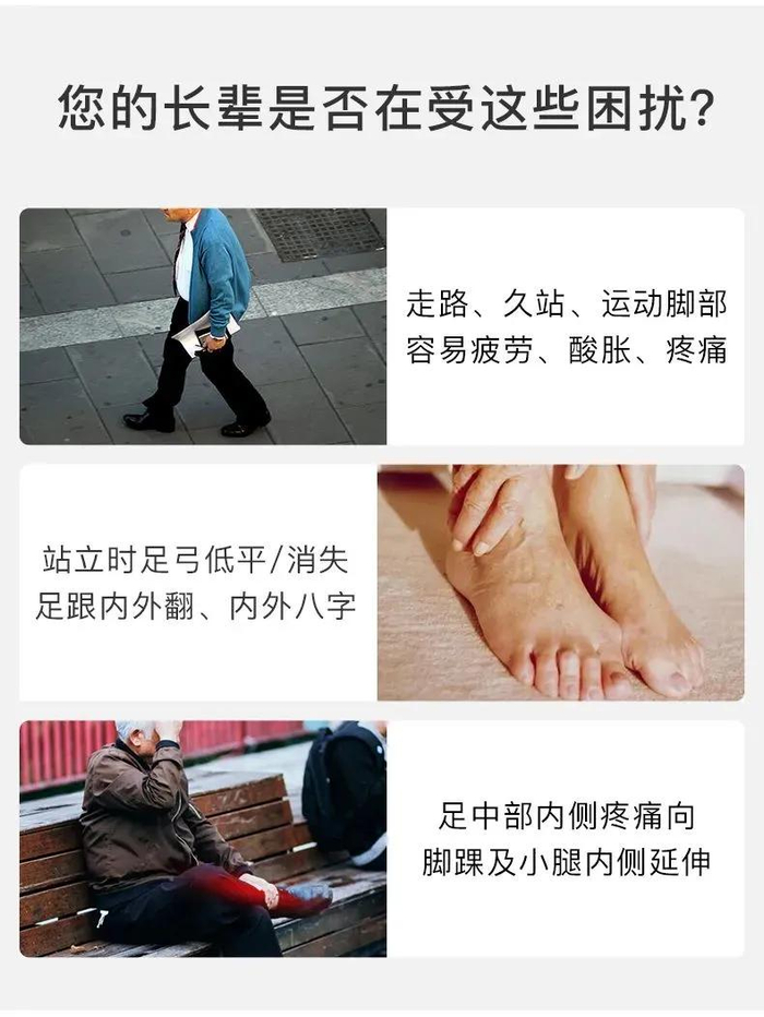 我们的父母上了年纪,脚部足弓老化了,所以,我们做儿女的再忙也别忘了给他们买上一副这样的鞋垫,让他们能够轻轻松松走更长更远的路!