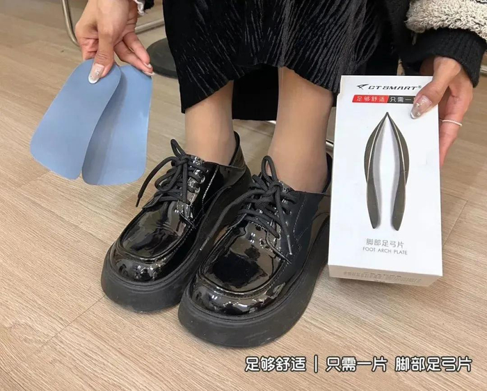 这款足弓鞋垫厚度只有1mm,任何鞋型都适用。
