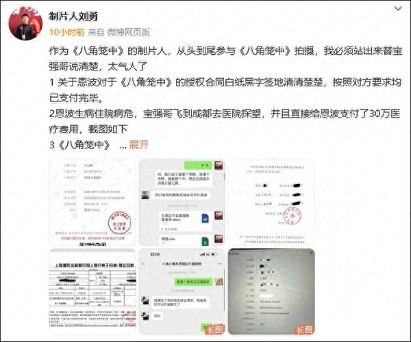 2.恩波生病住院病危,宝强哥飞到成都去医院探望,并且直接给恩波支付了30万医疗费用,截图如下