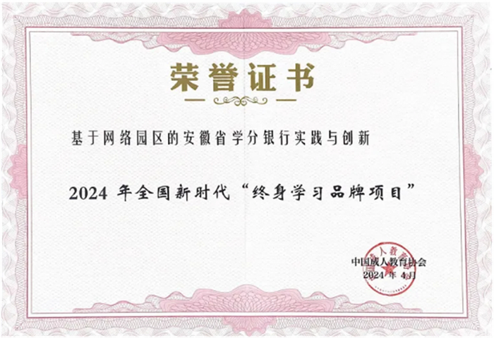 实力出圈!安徽省终身教育学分银行荣获2024年全国新时代“终身学习品牌项目”