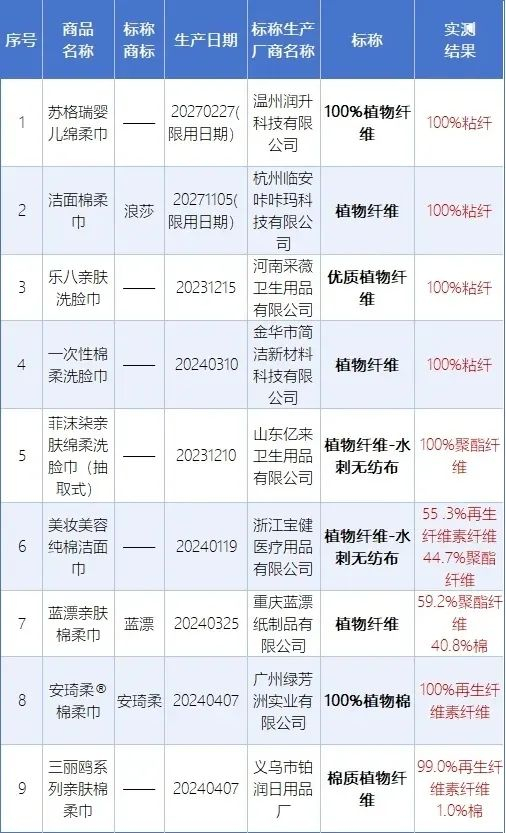 9批次样品纤维含量不符合标准